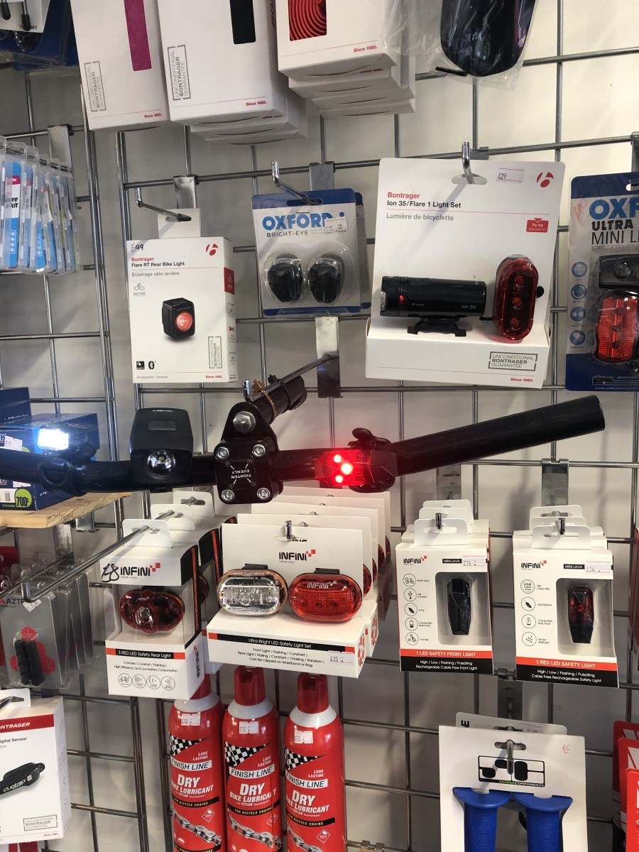 Light up date Our first drop of lights arrived this morning. We have now a range from Infini. Some USB single front and rears and also in pairs. Single front £14 Single rear £14 Set £24 AAA SET £15 Call in have a look at the fitting and mounting options Share this: Click to share on X (Opens in new window) X Click to share on Facebook (Opens in new window) Facebook Click to share on Reddit (Opens in new window) Reddit Click to share on WhatsApp (Opens in new window) WhatsApp Click to email a link to a friend (Opens in new window) Email Like Loading...